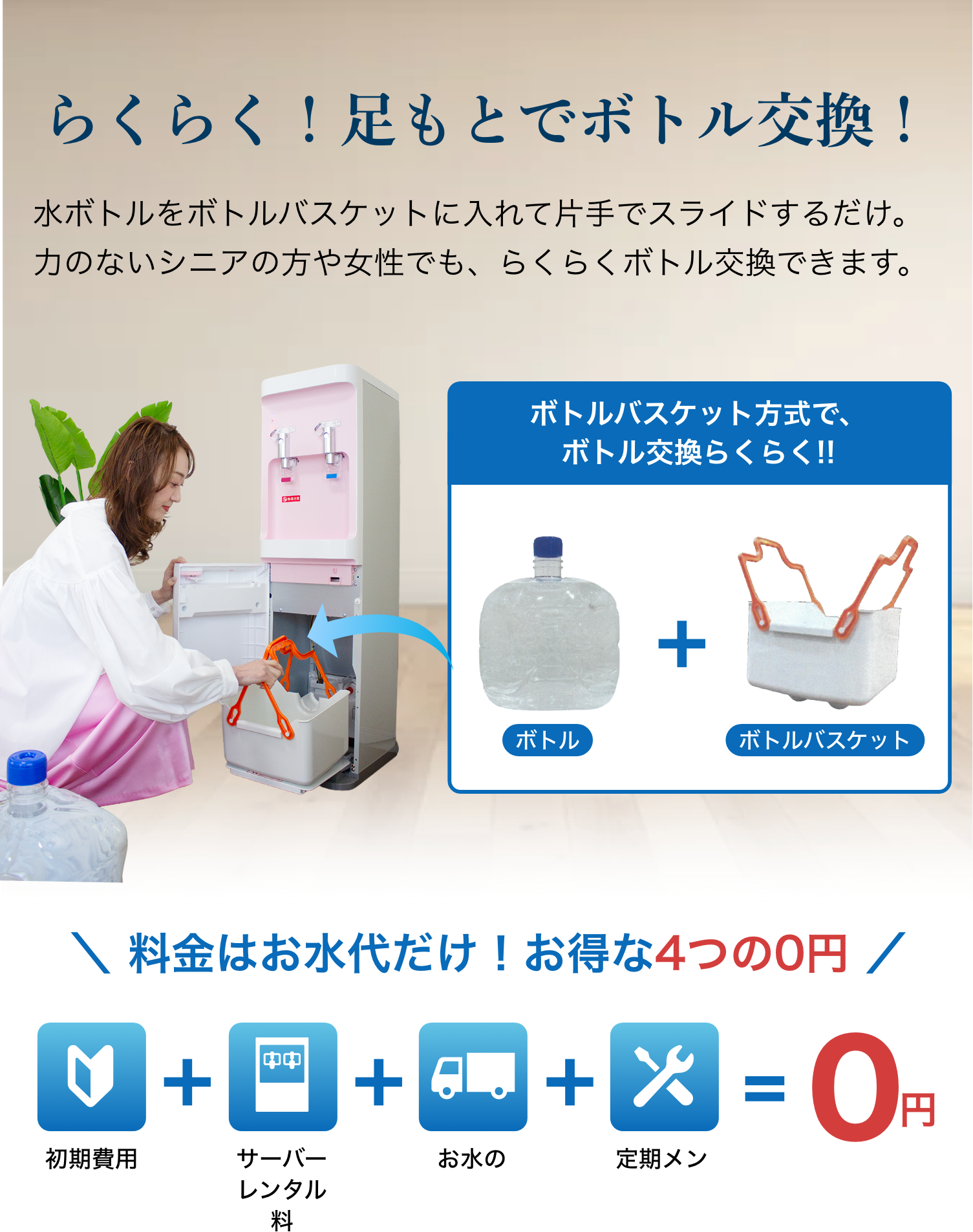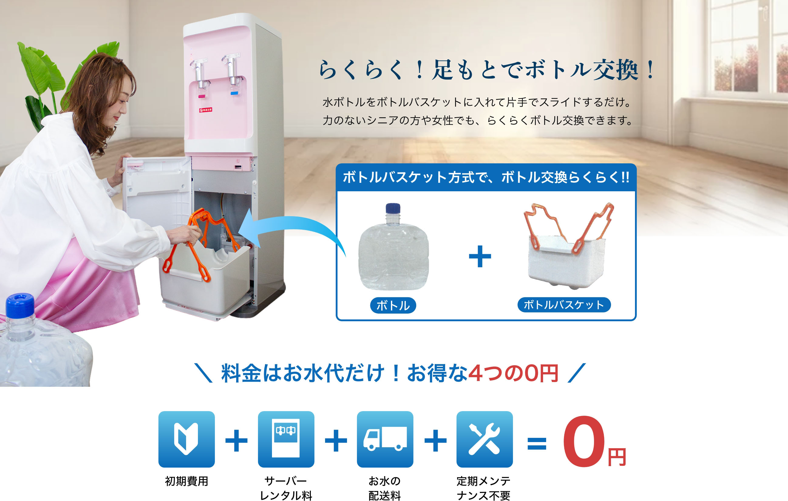 ウォーターサーバー内部のメンテナンスが全く必要のない画期的な設計です。